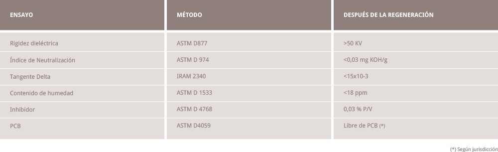 El aceite aislante regenerado deberá satisfacer las siguientes características físico-químicas mínimas: