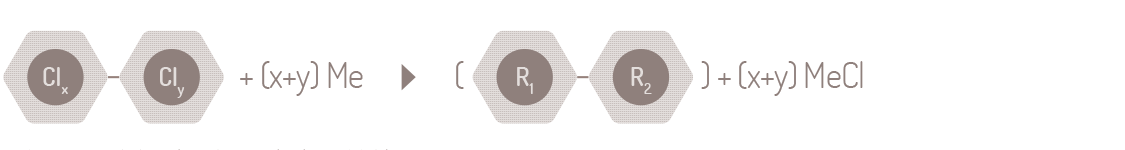 La tecnología desarrollada por KIOSHI S. A. se basa en el efecto que produce el reactivo Declor K, desarrollado por nuestra firma y basado en la acción de metales alcalinos sobre los compuestos orgánicos clorados, los cuales, mediante la reacción de Wurtz, sustituyen los átomos de cloro presentes en la molécula por estructuras alifáticas, “declorinando” las moléculas. De esta forma se eliminan las características de peligrosidad correspondientes al contenido de PCBs, lográndose además la reutilización del aceite base, ya que una vez tratado recupera las características que lo encuadran dentro de los valores admitidos por las normas IRAM 2026, para su reuso como aceite aislante.